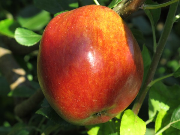 Aussehen: Die Bäume haben eine breitkugelige ausladende Krone. Der Ertrag setzt sehr spät ein und alterniert, unsere Bäume dieser Sorte haben nach 12 Standjahren die ersten Früchte getragen. Die Früchte sind mittelgroß und sehen faßförmig aus, sie haben eine sonnenseits braunrotgeflammte Schale mit bläulichem Unterton.